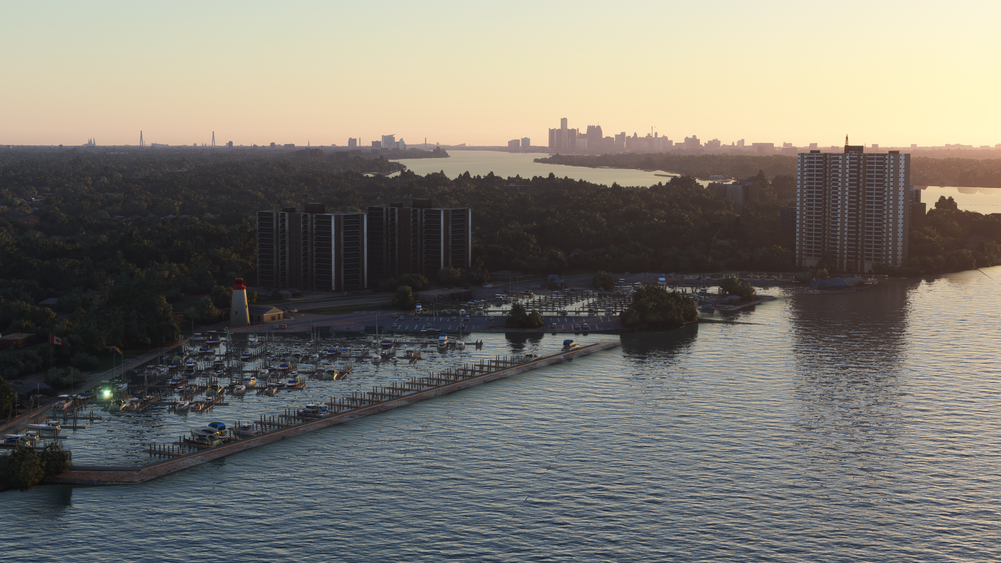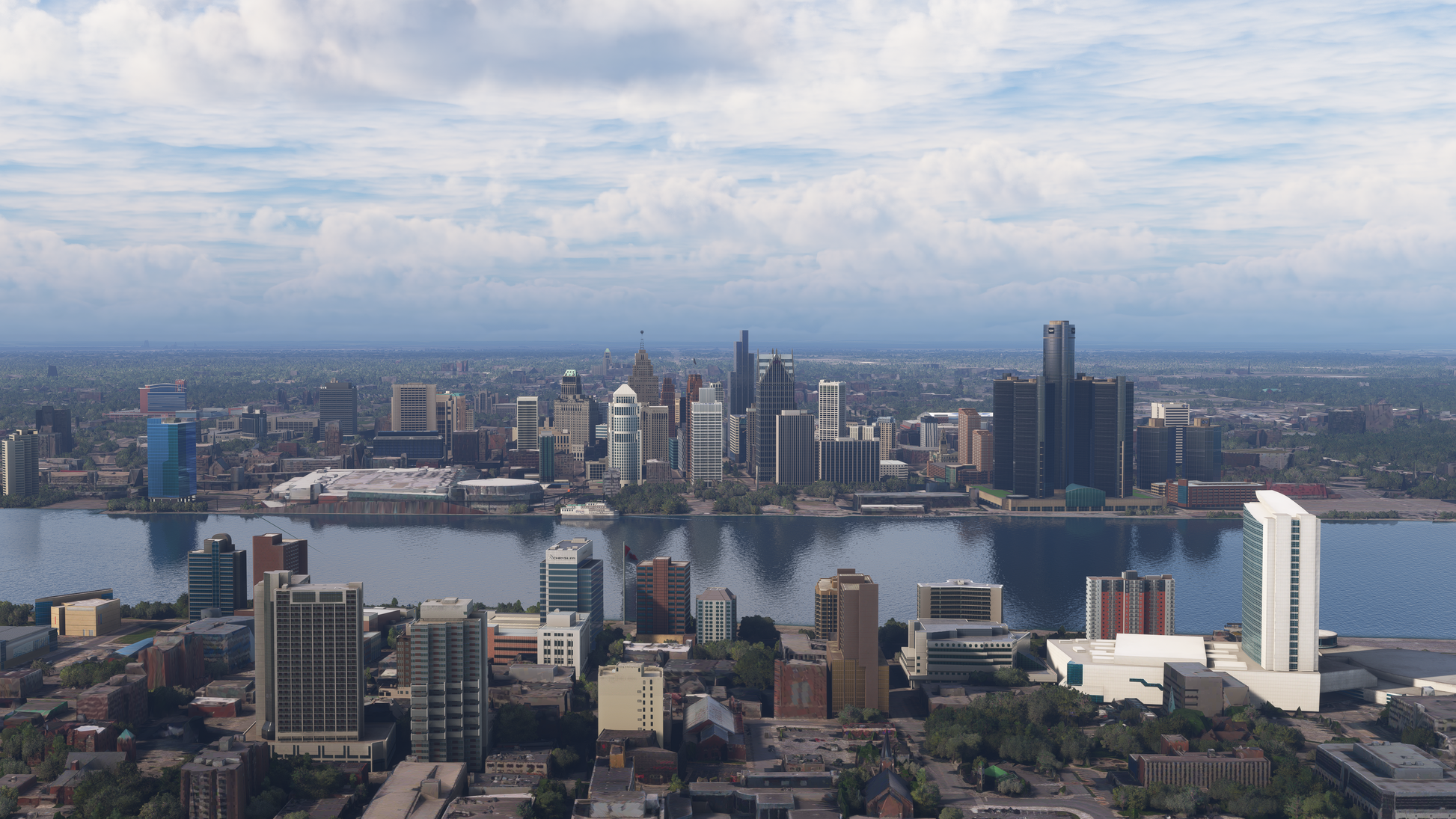 Crafted with love by a Detroit native of 25+ years, this pack brings Detroit and Windsor to life with hundreds of handmade buildings, boats, and monuments, immersive night lighting, animations, and ground texture improvements.