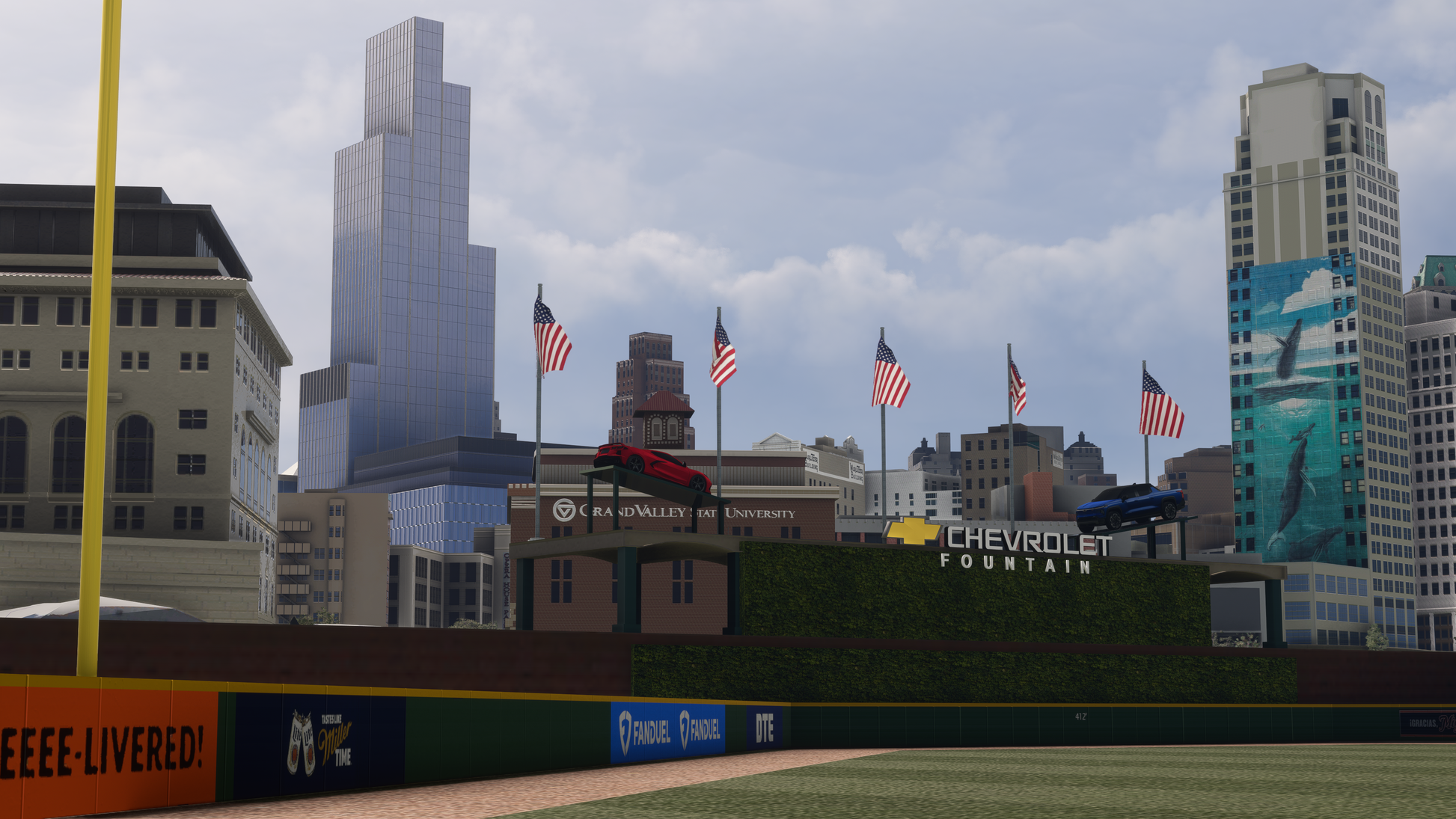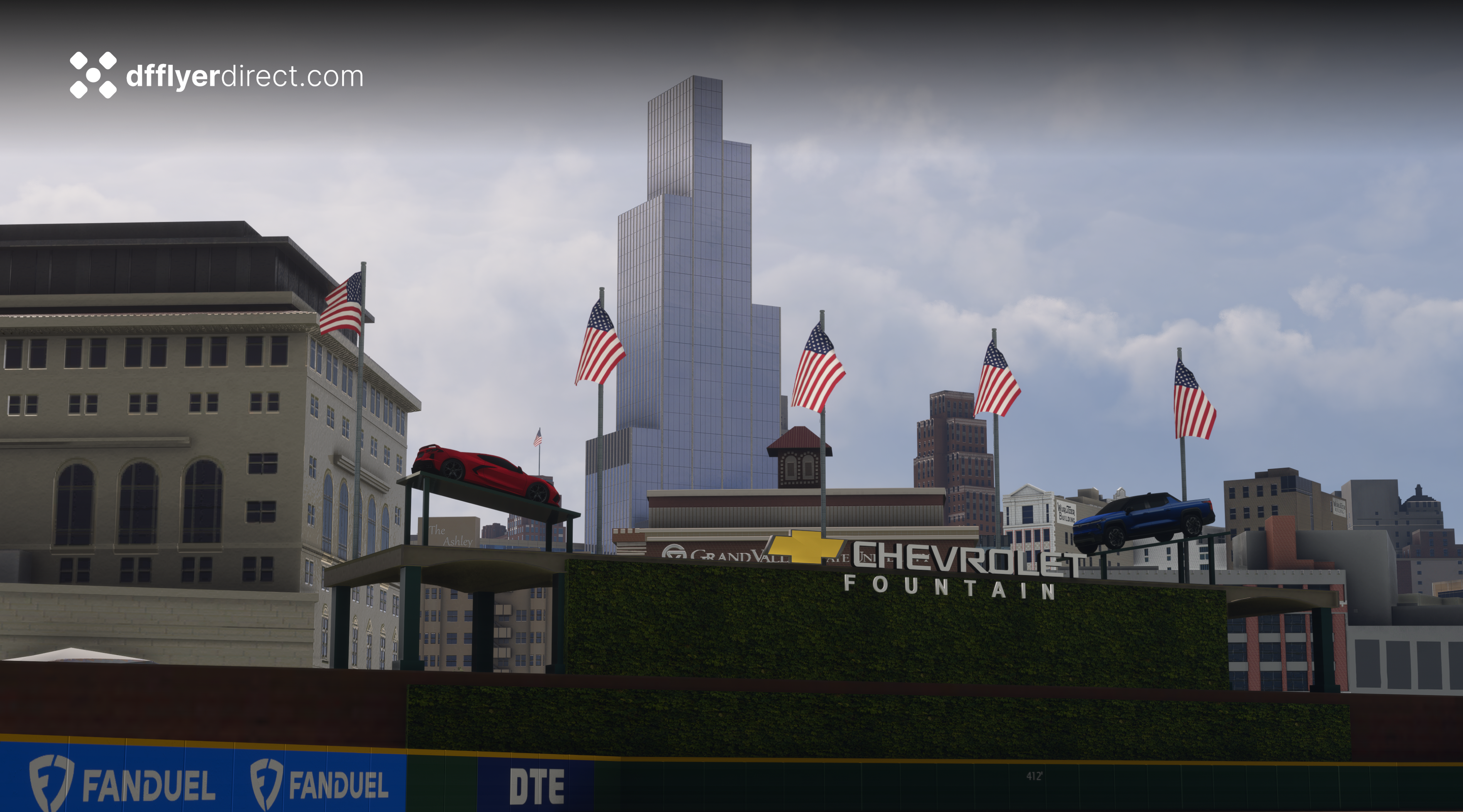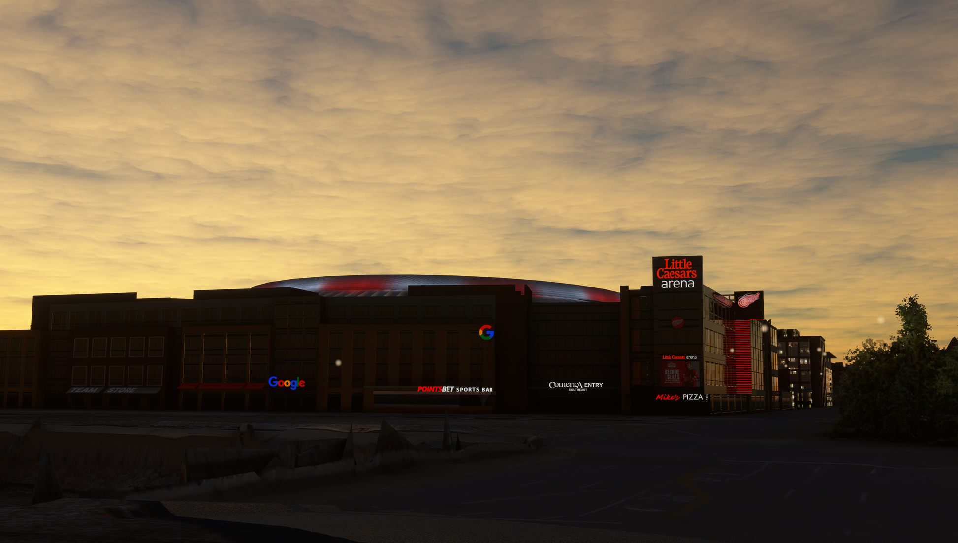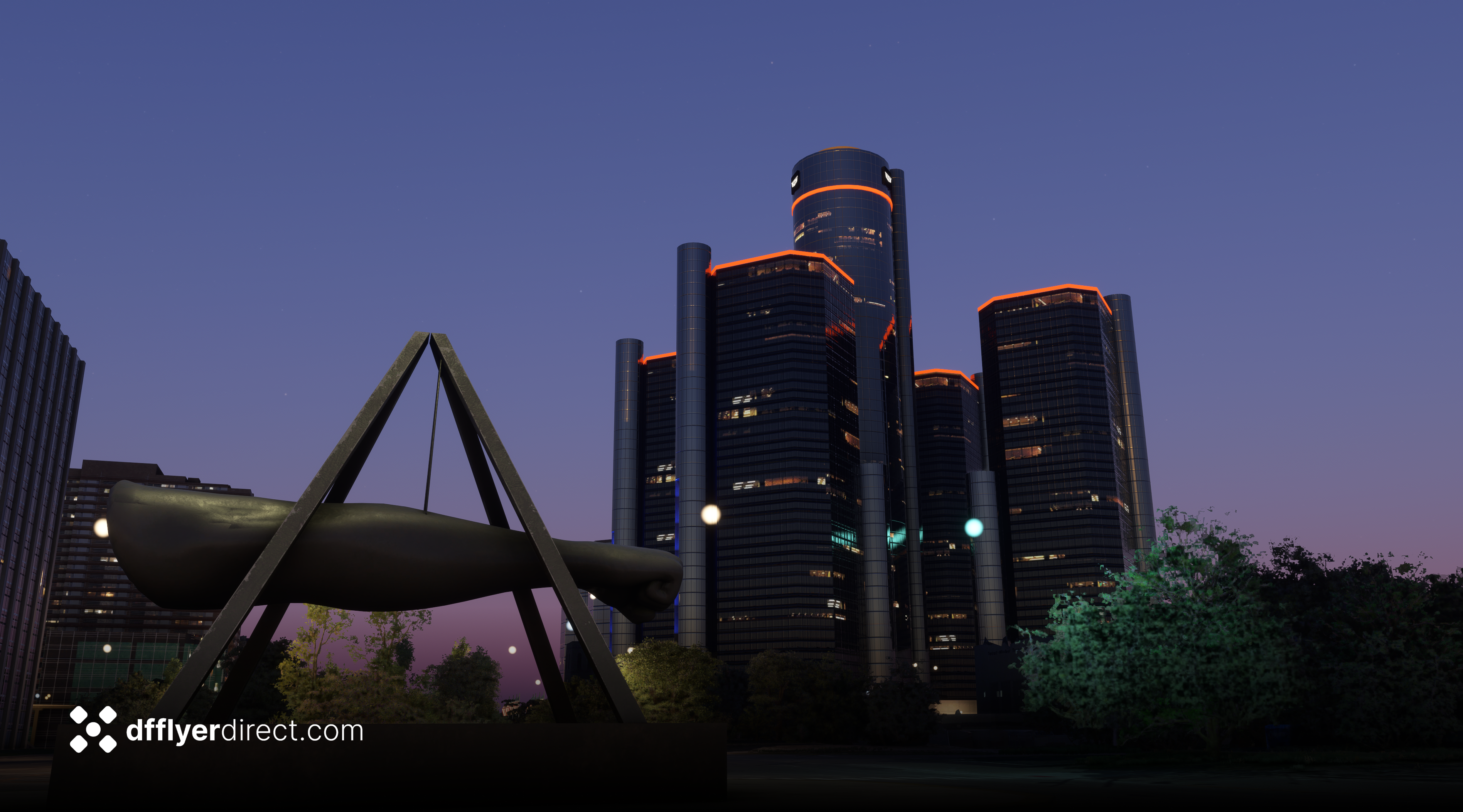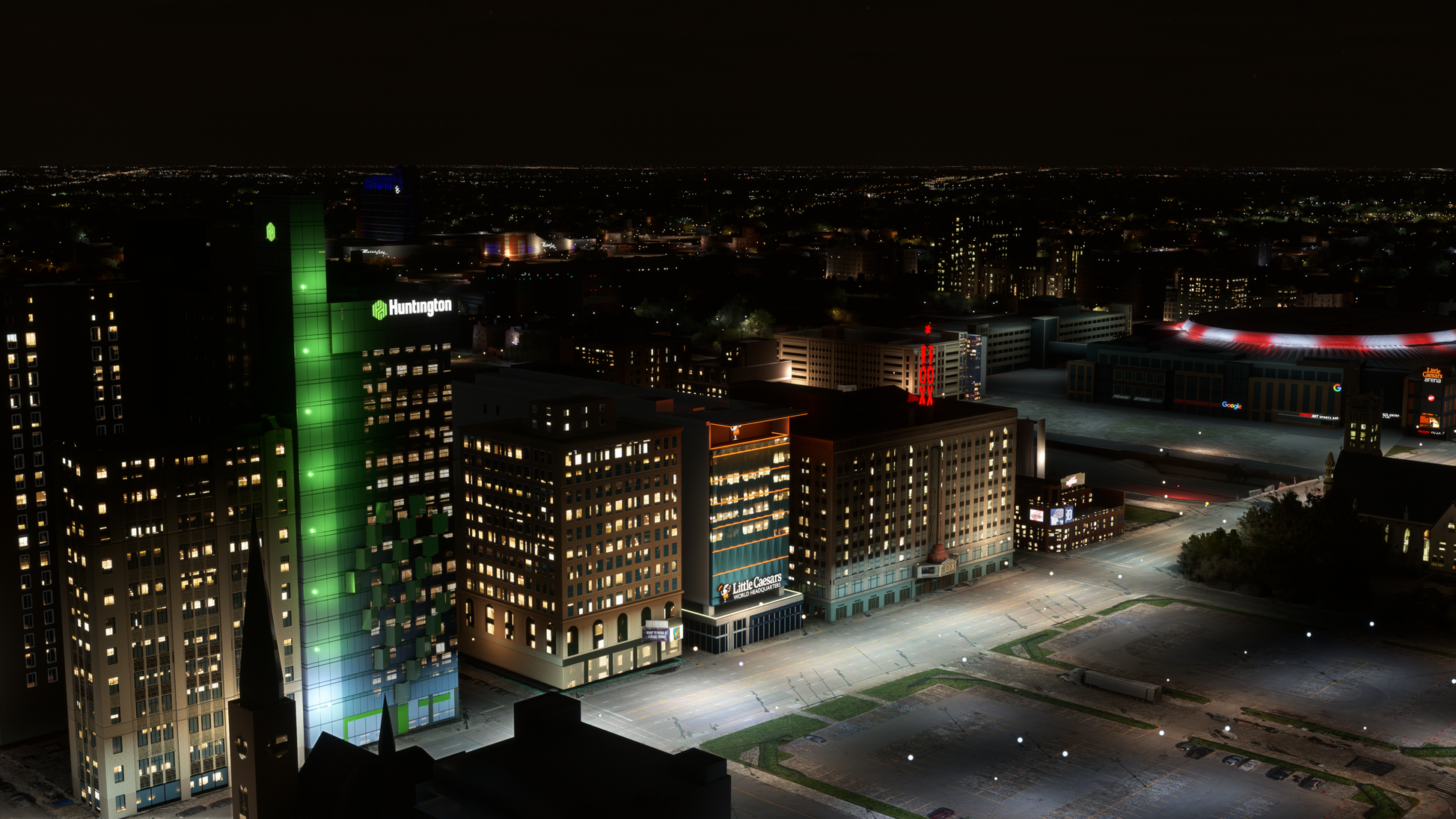 - Lights (based on real world sequences) on Little Caesar's Arena, Ford Field, Comerica Park, the RenCen, the historic Penobscot Building and more