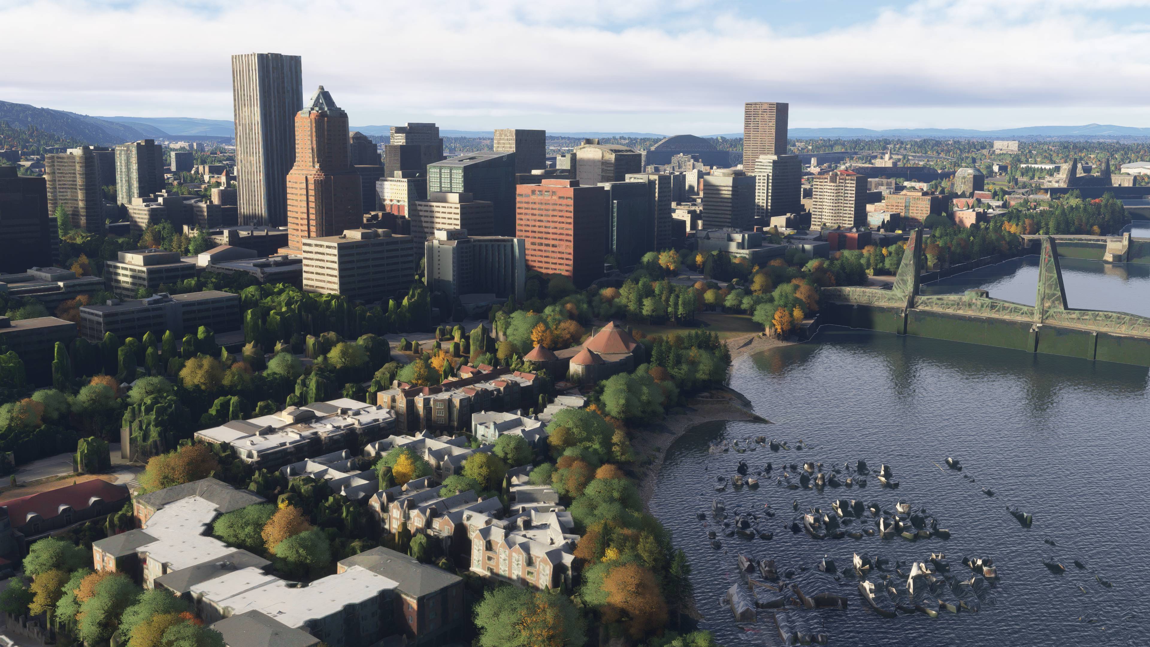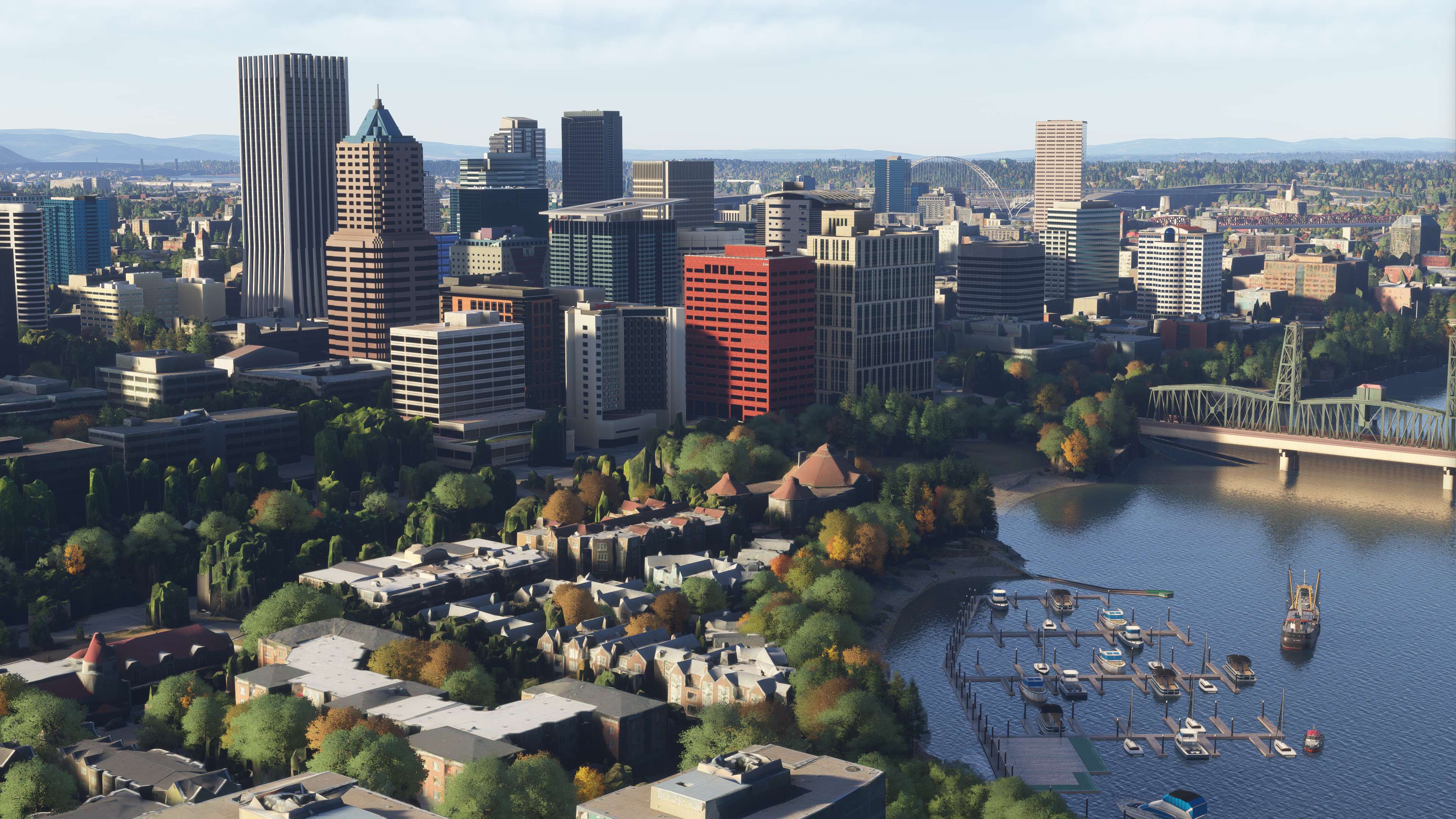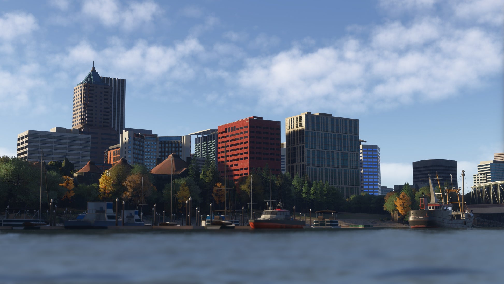 This pack brings Portland to life with 75+ handcrafted buildings, accurately modeled Willamette River bridges, a custom marina, and water and tree cleanup along the riverfront, with enhanced textures and night lighting throughout downtown.
